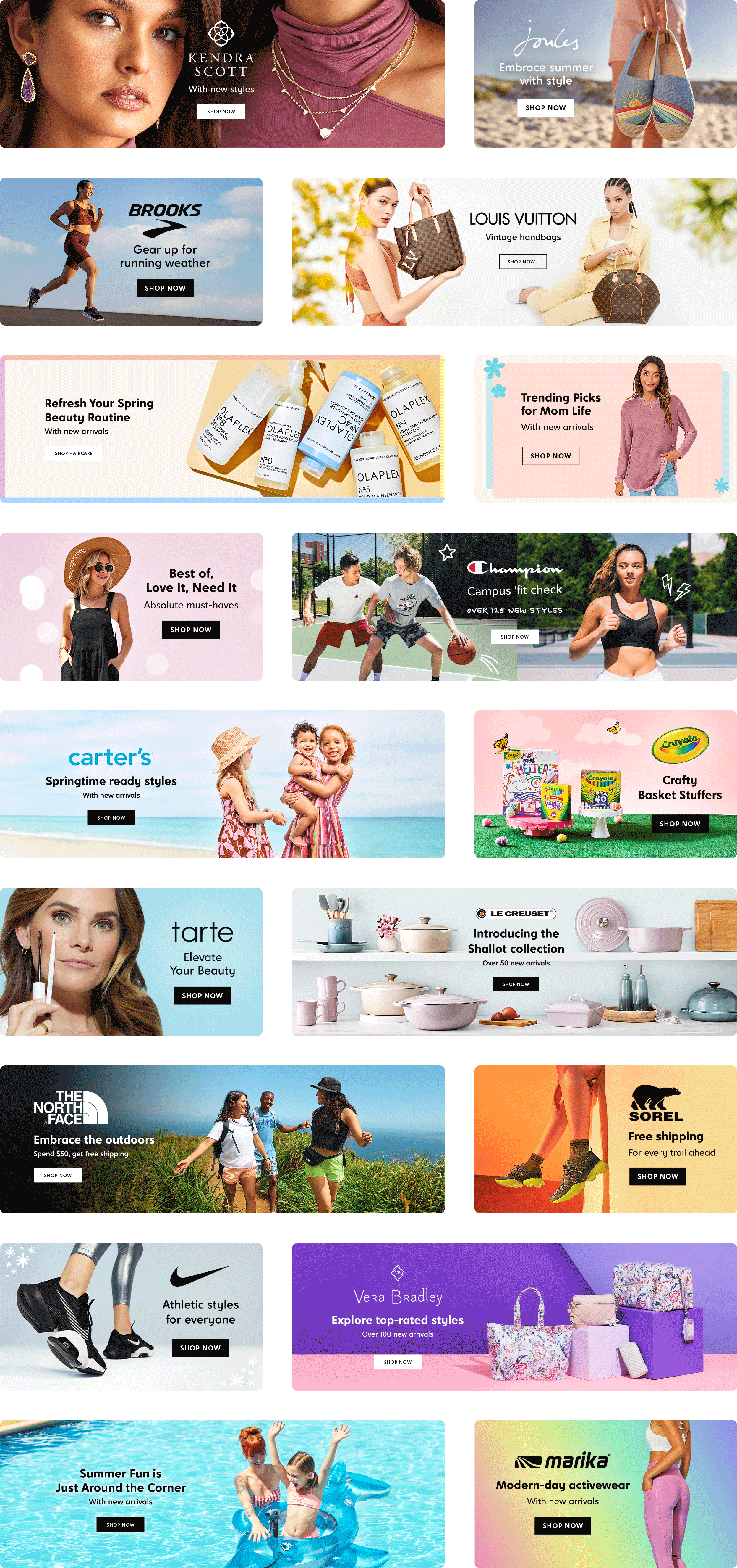 As a production designer, I collaborated closely with the copy, marketing, and merchandising teams to create homepage headers that aligned with Zulily’s evolving brand. Each project began with photo retouching to refine color, enhance clarity, and improve composition, using Adobe Creative Cloud and Figma. Along with incorporating key messaging, promotions, and supporting visuals to ensure the final delivery met brand and style-guide requirements.